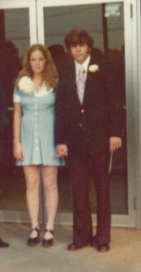 I turned around, and spread across a large screen, was a full size picture of Tim and me from the day of our wedding. There I was all 17 years, curly hair and buck teeth. The hem of my blue dress rising several inches above my knee. The buttons bulging from the swelling chest of my teen age pregnancy. Tim, so handsome in his coat and fat knotted tie.